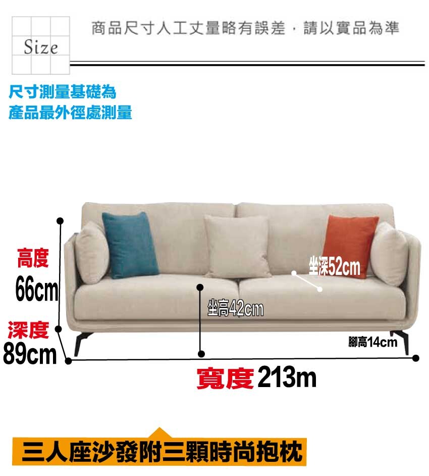 採用內部實木板材框架+烤漆金屬腳座+透氣棉麻布料+高回彈力加厚泡棉等安心材質製造
