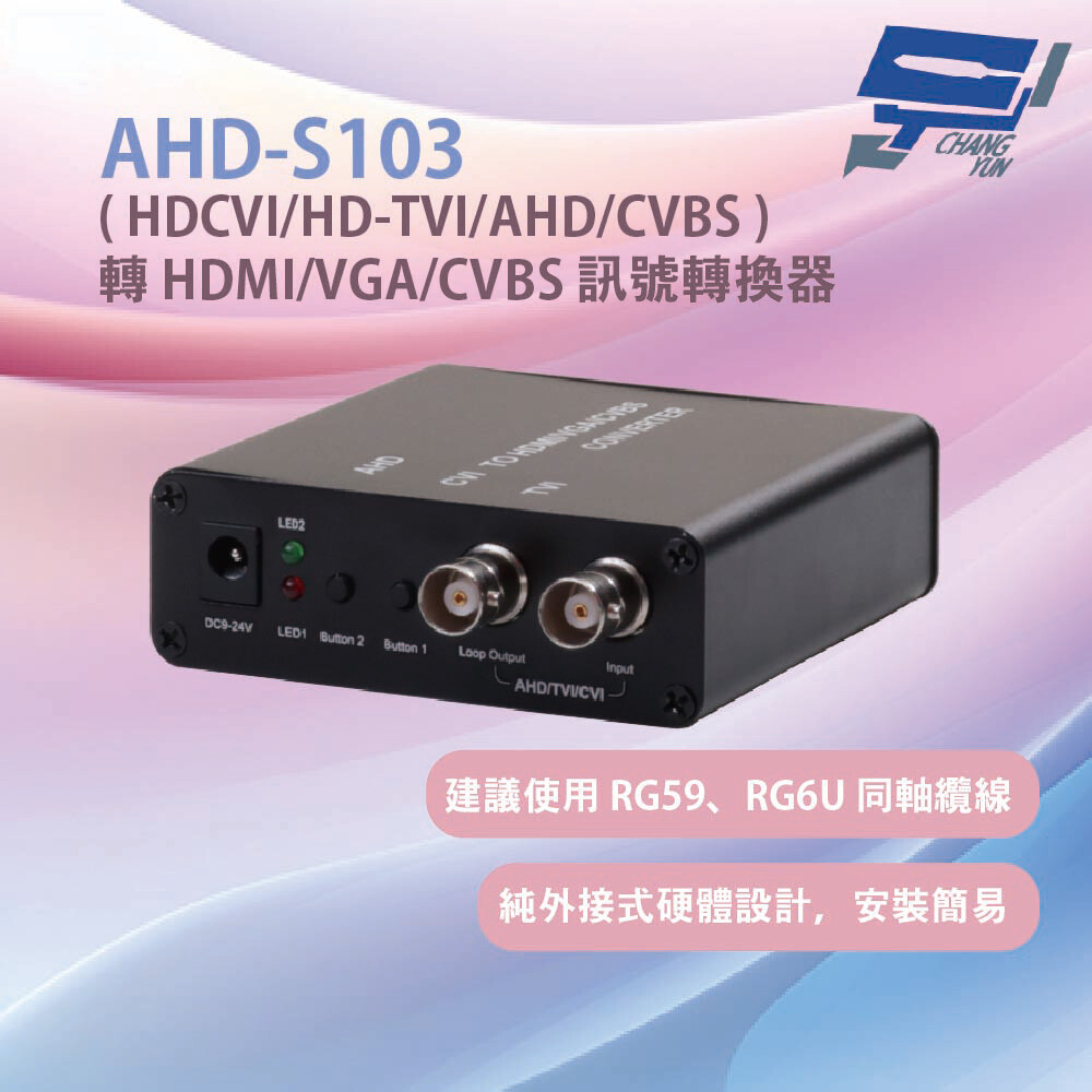 ● 可將 ( HDCVI/HD-TVI/AHD/CVBS ) 訊號輸入轉換為 HDMI/VGA/CVBS 訊號輸出顯示。