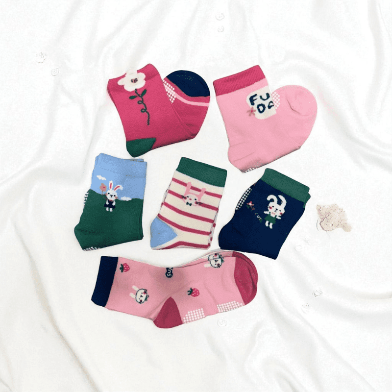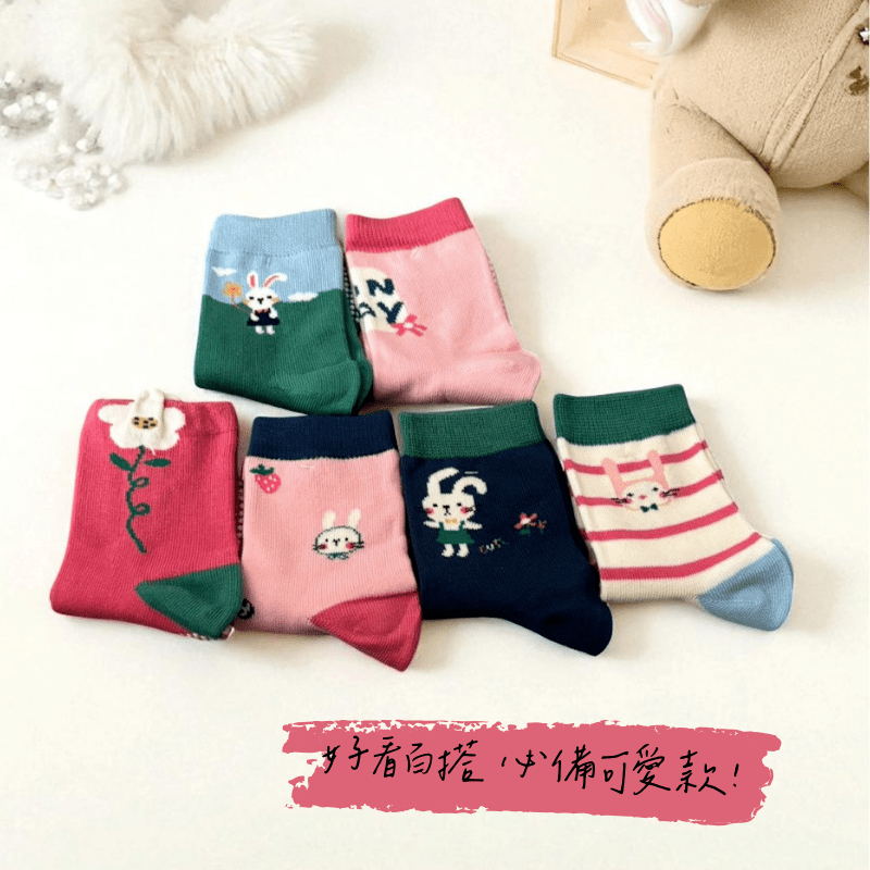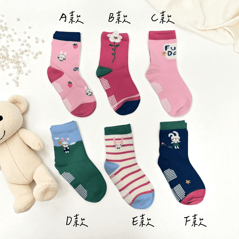 👍凱美棉業|純棉止滑童襪 小花兔兔款 可愛女童襪 兔兔童襪 小花童襪