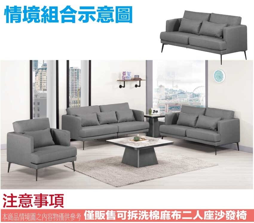 【綠家居】山德灰色透氣棉麻布二人座組合 時尚灰色系+現代美型外觀+安心材質製造,就是這種頂級質感的設計,能輕鬆地融入各種空間風格,採用內部實木板材框架+烤漆金屬腳座+透氣棉麻布料+高回彈力加厚泡棉等安心材質製造,品質安心有保障,現在購買專人送到府服務,免組裝+免運費,讓你省時省力省運費!
