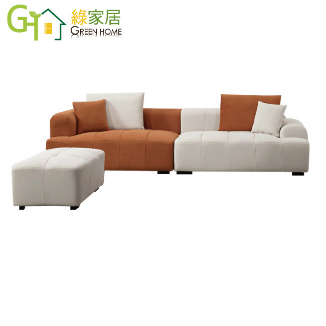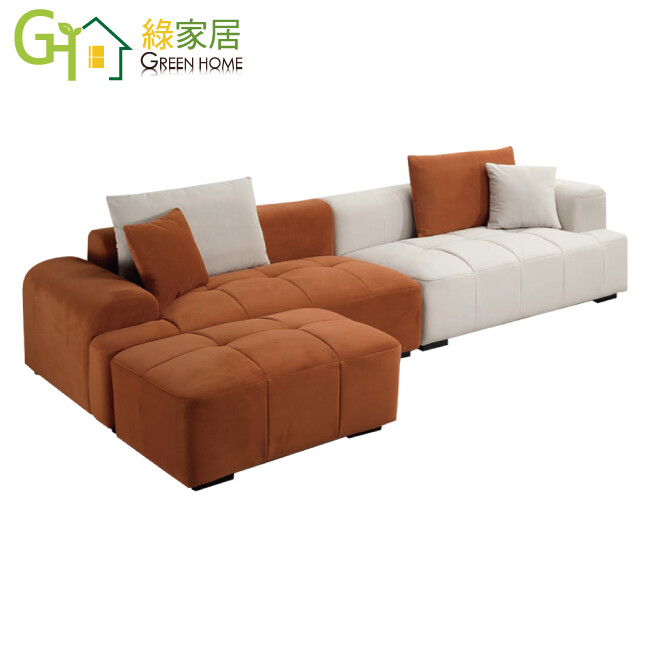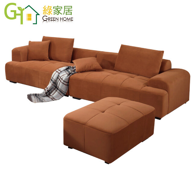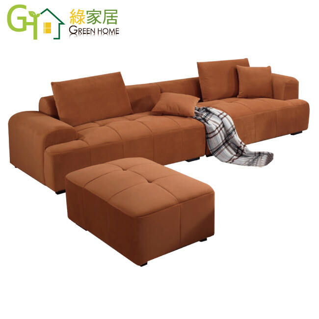 【綠家居】布可科技絨布L型沙發組合(四色可選+四人座+椅凳組合) 四色可選+四人座+椅凳組合+現代美型外觀+安心材質製造,就是這種頂級質感的設計,能輕鬆地融入各種空間風格,採用內部實木板材框架+防潮造型腳座+進口科技絨布+高回彈力加厚泡棉等安心材質製造,品質安心有保障,現在購買專人送到府服務,免組裝+免運費,讓你省時省力省運費!