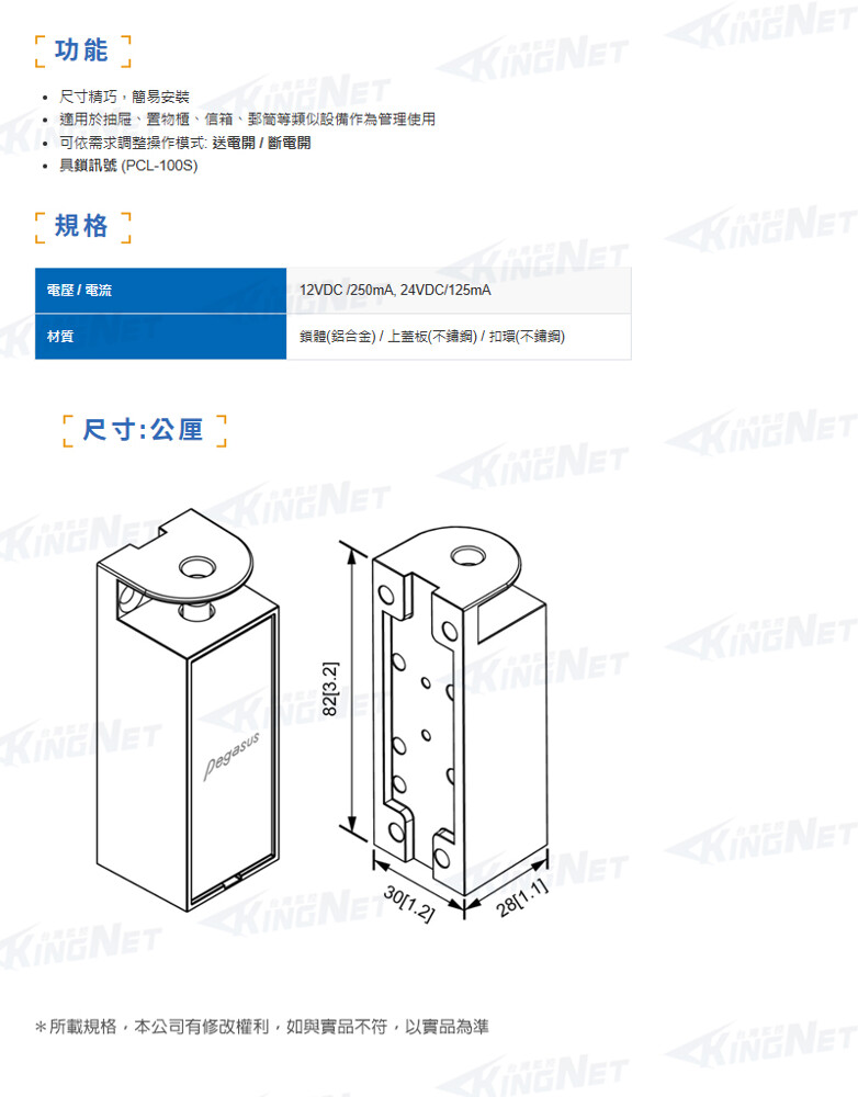 帝網監視器 鵬驥 Pegasus PCL-100S 櫃子鎖 抽屜鎖 置物櫃鎖 斷電開/送電開可調整