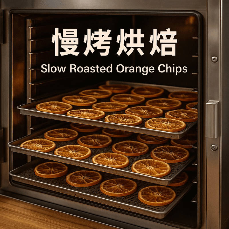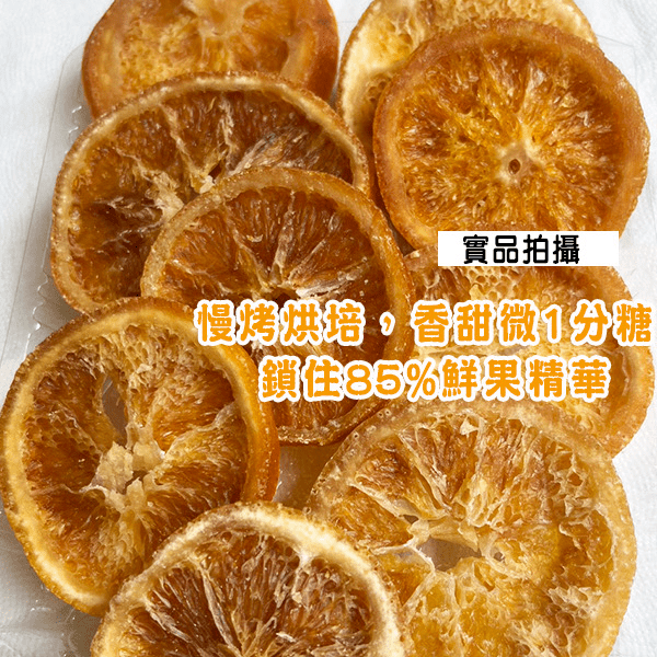 不同於市售高溫速烤的橙片,我們堅持 低溫長時間烘焙,只為保留 85%以上的鮮果精華。