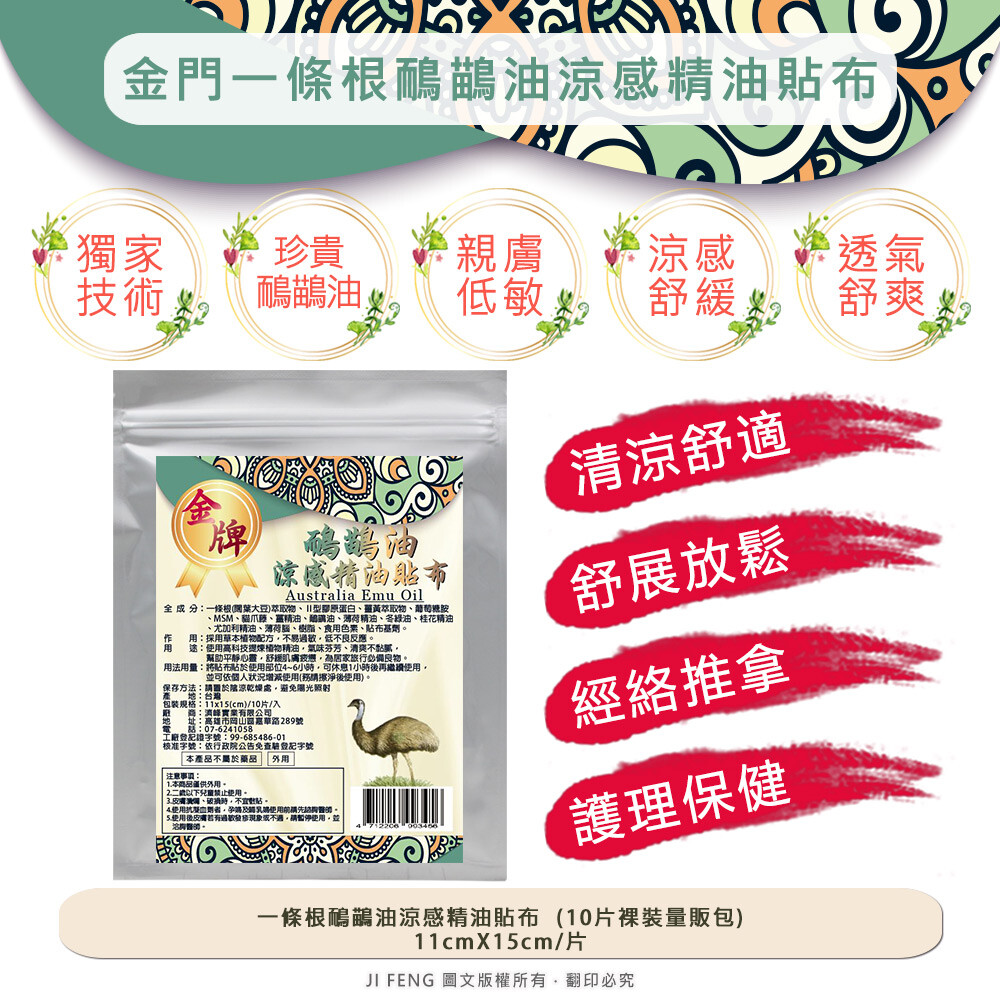 商品內容:【金牌】金門一條根鴯鶓油涼感精油貼布(量販包) 10入(加贈滾珠60ml-隨機)