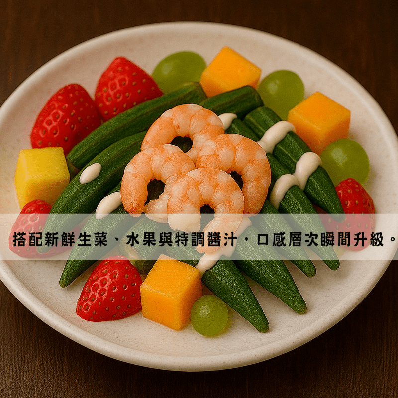 金黃脆秋葵遇上清新生菜,酸甜醬汁輕輕點綴,讓你大口咬下也無負擔。