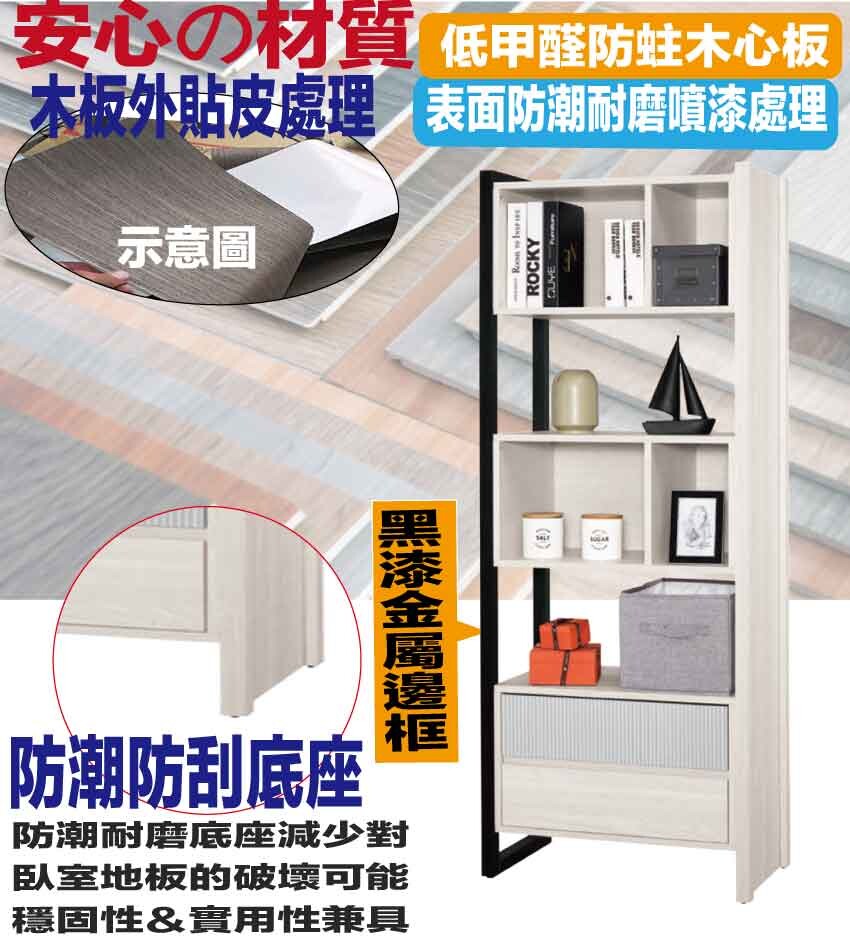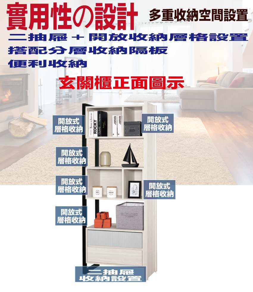 【綠家居】克萊雙色2.3尺二抽開放玄關櫃/書櫃 木紋雙色系+安心材質製造,使用放心+搭配居家更便利,採用防蛀木心板+烤漆五金腳座+五金滑軌結構等安心材質製造 ,外層採用防潮耐磨噴漆處理搭配採用二抽屜+開放層格等收納空間設計,全由專人配送到家,專業安心服務,替你省下更多時間!