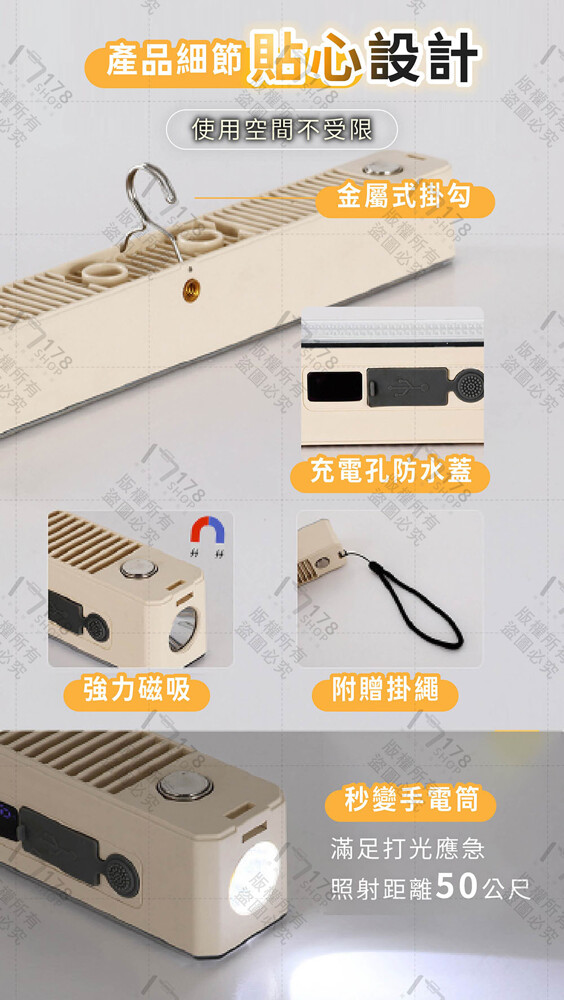 內容物:LED磁性工作燈 ×1(含掛勾、掛繩、充電線)