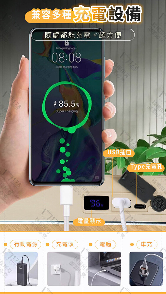 ✅ USB / Type-C充電 — 可接行動電源、車充、筆電 🔋