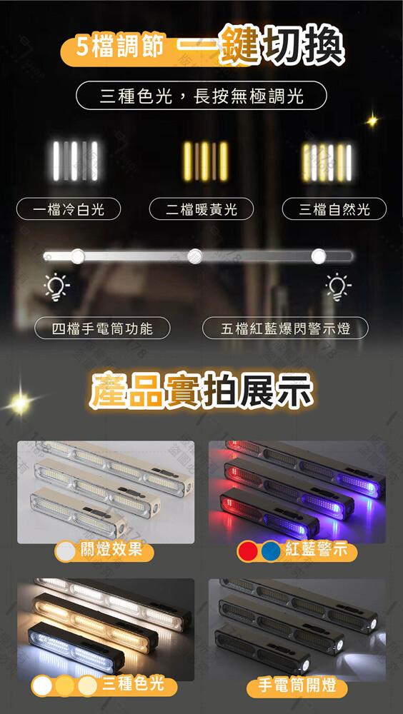 ✅ 多功能應用 — 可當工作燈、手電筒、紅藍警示燈 🚨