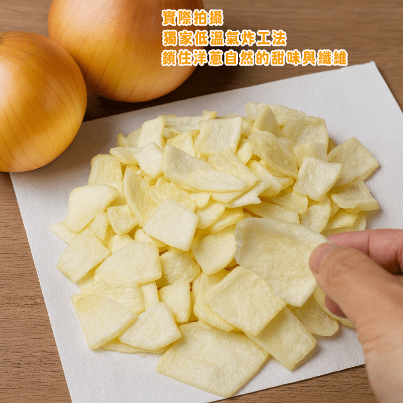 低溫氣炸工法,鎖住洋蔥天然甘甜,無油膩、少卡路里。