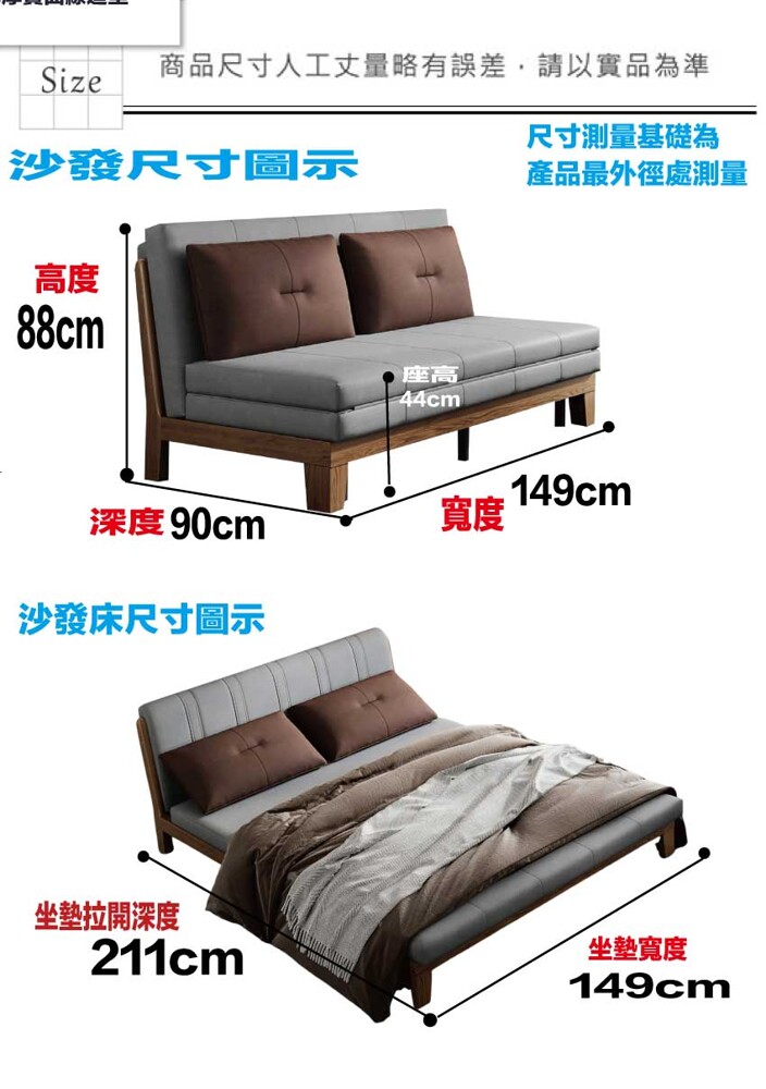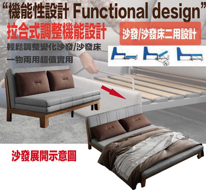 沙發將坐墊往前拉開&展開後即可即可變化為沙發床使用,實用機能性設計打造居家便利性