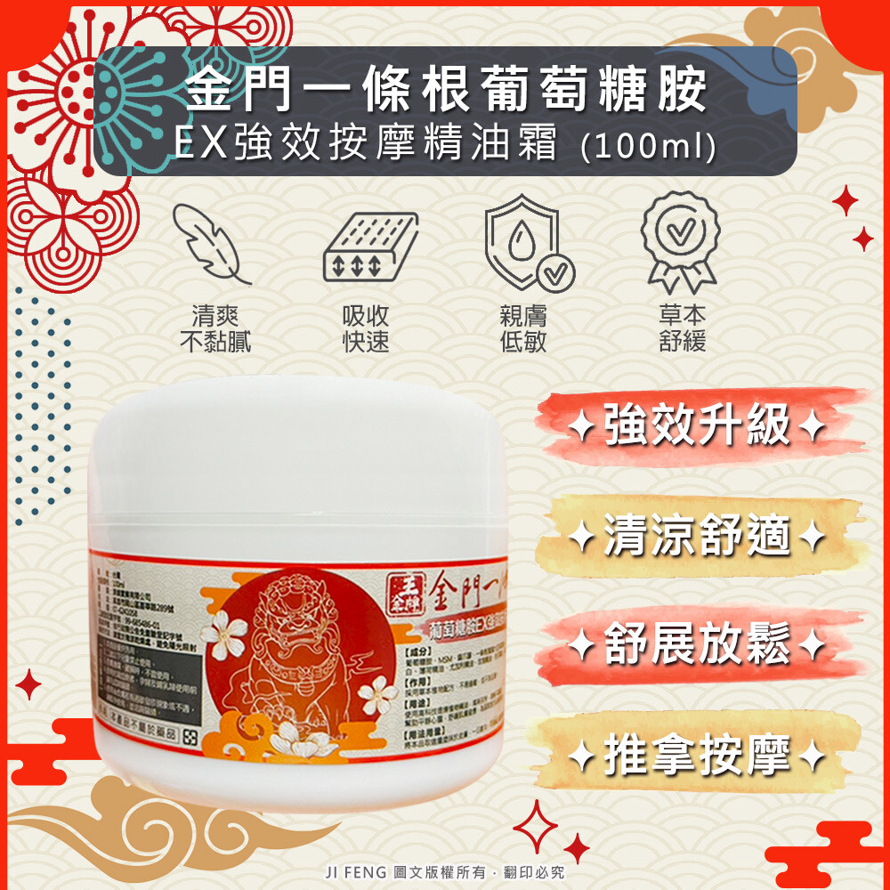 商品內容:【王金牌】金門一條根葡萄糖胺EX強效按摩精油霜100ml