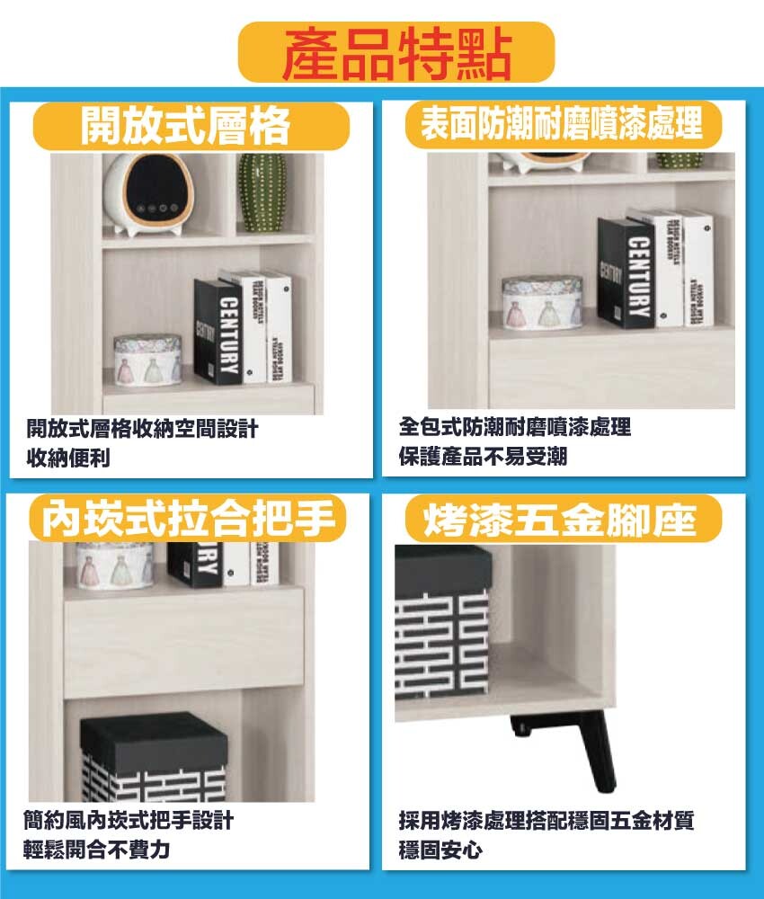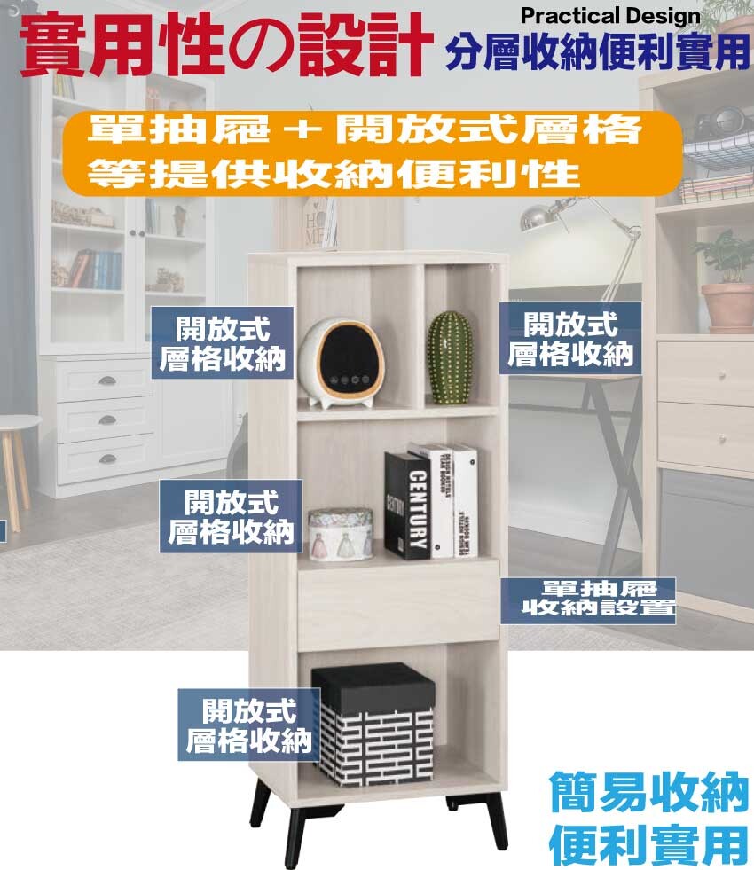 【綠家居】丹尼1.5尺單抽半開放展示櫃 木紋雙色系+安心材質製造,使用放心+搭配居家更便利,採用防蛀木心板+烤漆五金腳座+五金滑軌結構等安心材質製造 ,外層採用防潮耐磨噴漆處理搭配採用單抽屜+開放層格等收納空間設計,全由專人配送到家,專業安心服務,替你省下更多時間!