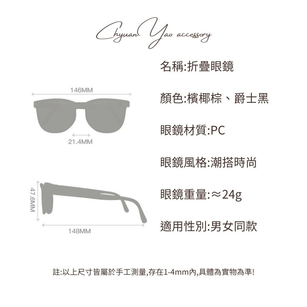 顯瘦神器 造型眼鏡 迷你掌上型 輕巧體積 彈簧絞鏈 多種臉型適戴 附贈收納 可手拎可掛包 名稱:折疊眼鏡 顏色:檳椰棕、爵士黑 眼鏡材質:PC 眼鏡風格:潮搭時尚 眼鏡重量:≈24g 適用性別:男女同款 產地:中國