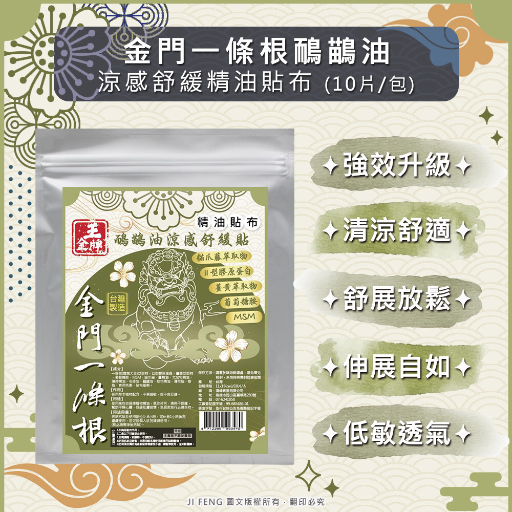 【王金牌】金門一條根鴯鶓油涼感舒緩精油貼布(量販包)10片/入