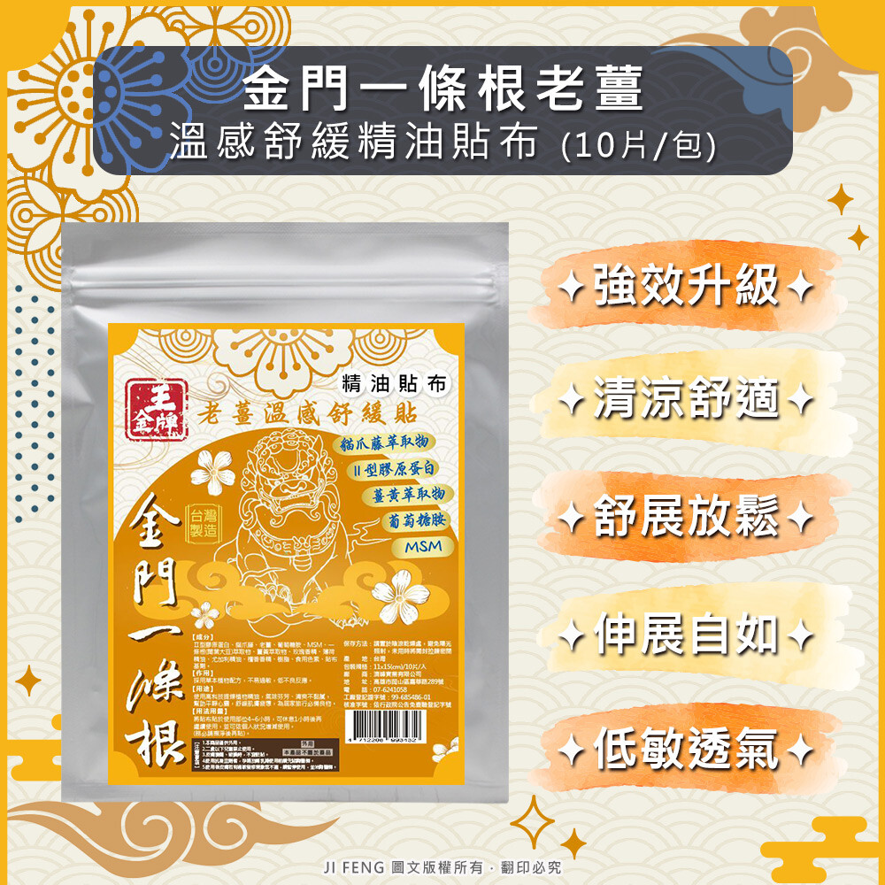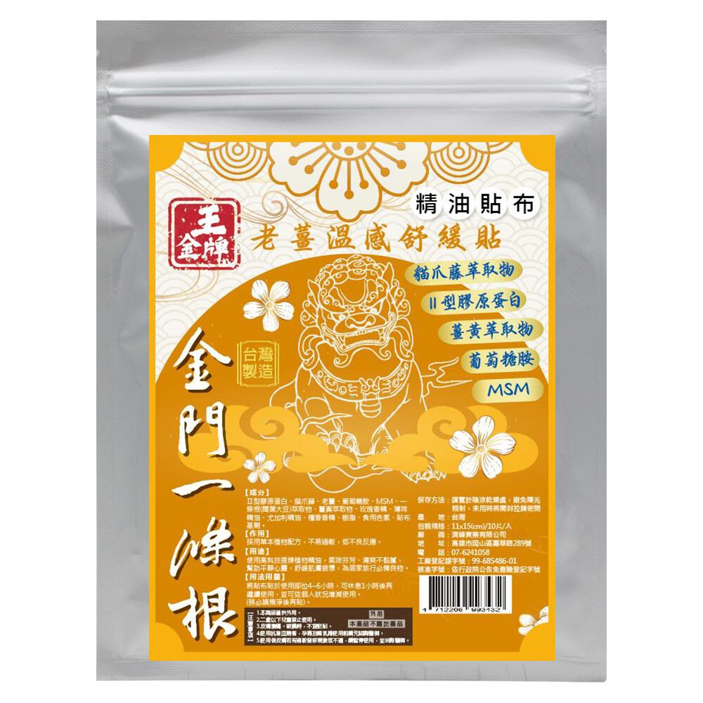 【王金牌】金門一條根老薑溫感舒緩精油貼布(量販包)10片/入