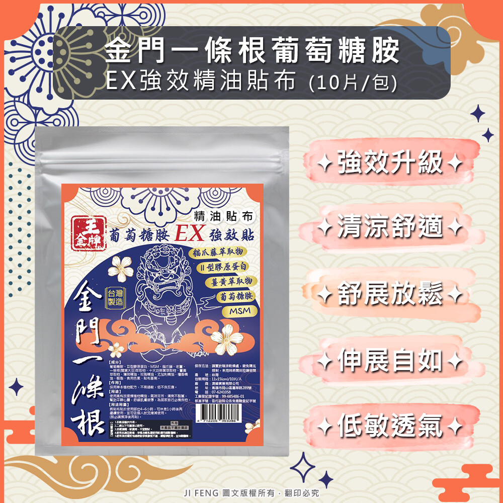 【王金牌】金門一條根葡萄糖胺EX強效精油貼布(量販包)10片/入