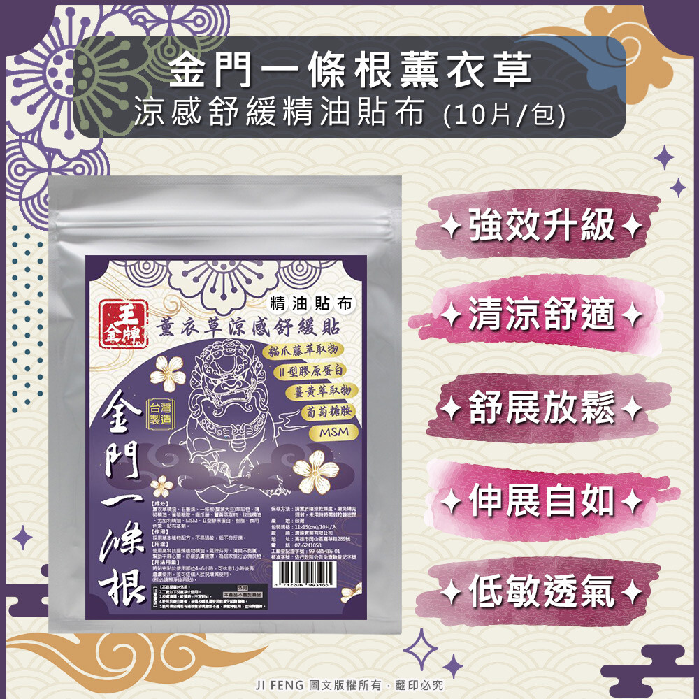 【王金牌】金門一條根薰衣草涼感舒緩精油貼布(量販包)10片/入