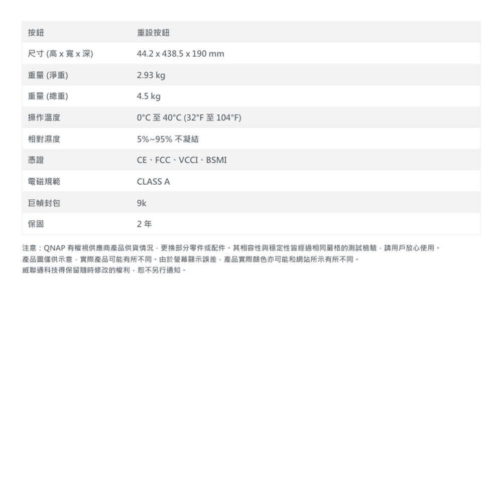 尺寸 (高 x 寬 x 深) 44.2 x 438.5 x 190 mm
