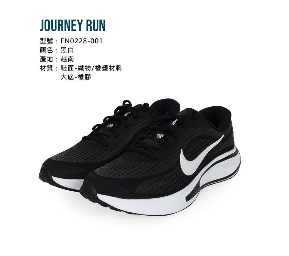 NIKE JOURNEY RUN 男緩震慢跑鞋-訓練 休閒 黑白