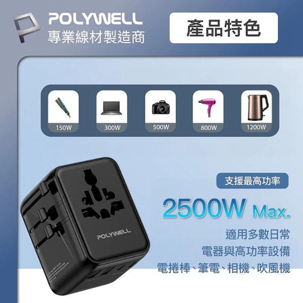 【適用大功率電器】最大支援2500W功率,可安全使用吹風機、熱水瓶等高耗電設備,穩定供電不跳電。