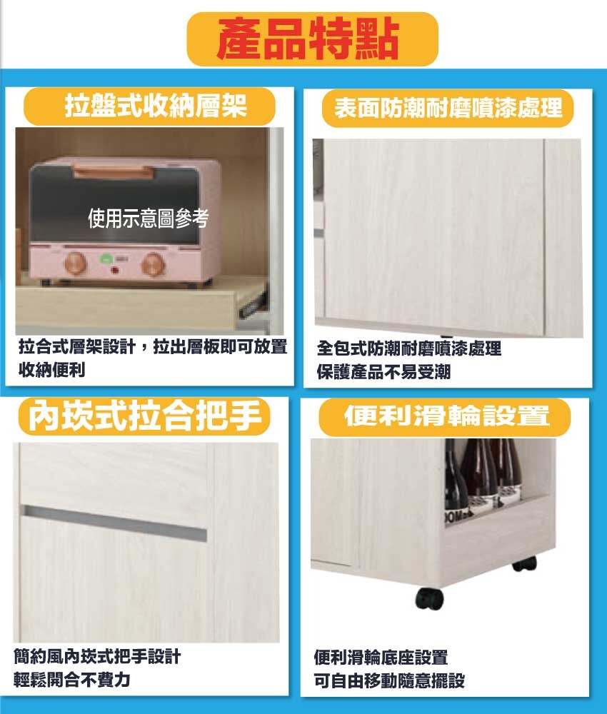 採用防蛀木心板+防潮耐磨底座+防夾手緩衝門片五金+仿石紋耐磨美耐皿桌面板+五金滑軌結構等安心材質製造