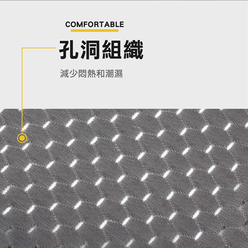 ◉孔洞組織散熱設計,減少悶熱和潮濕