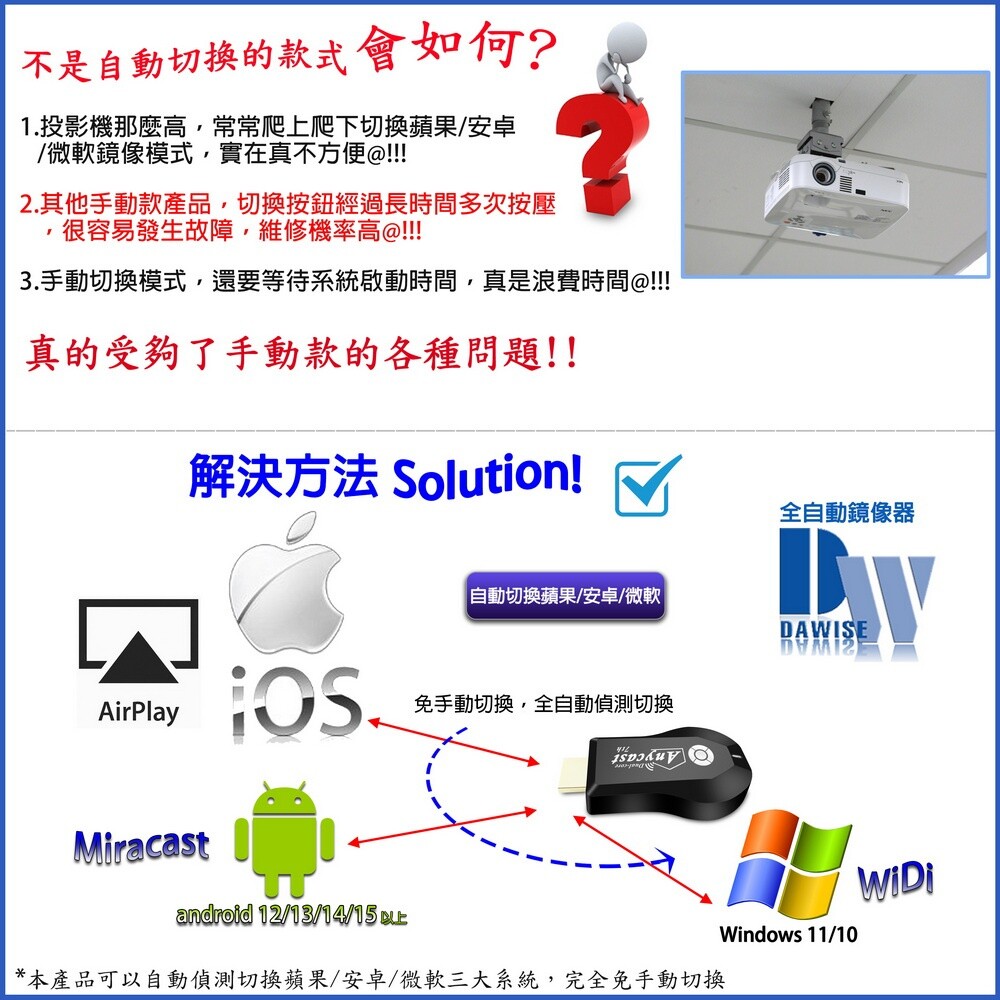 支援蘋果/安卓/電腦無線投影顯示