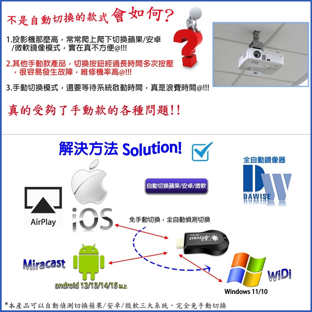 支援蘋果/安卓/電腦無線投影顯示
