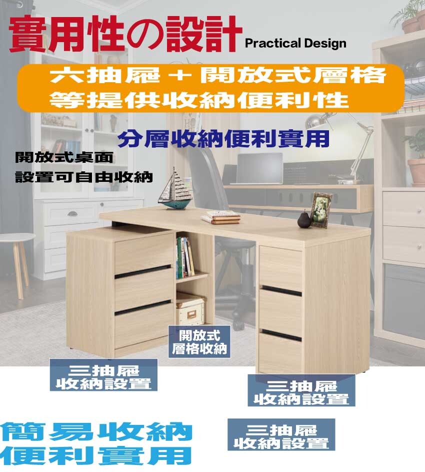 搭配採用五六抽屜+開放層格等收納空間設計