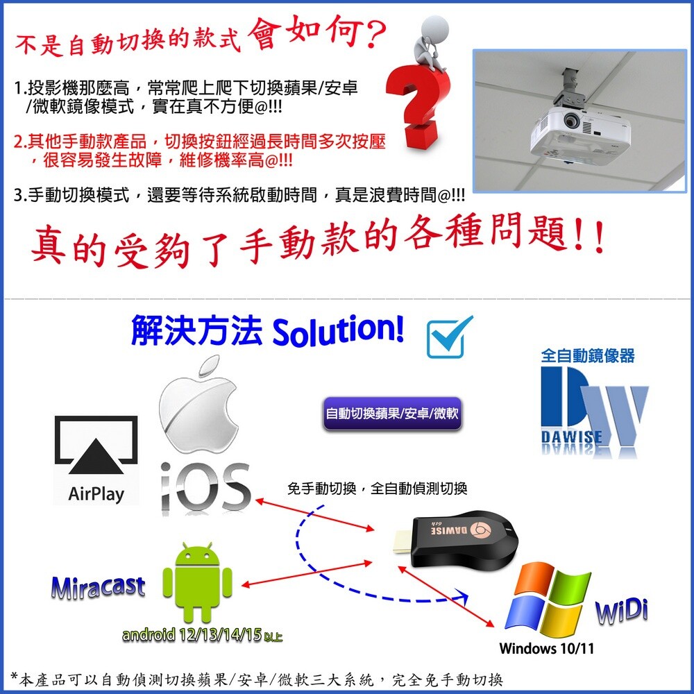 支援蘋果/安卓/電腦無線投影顯示