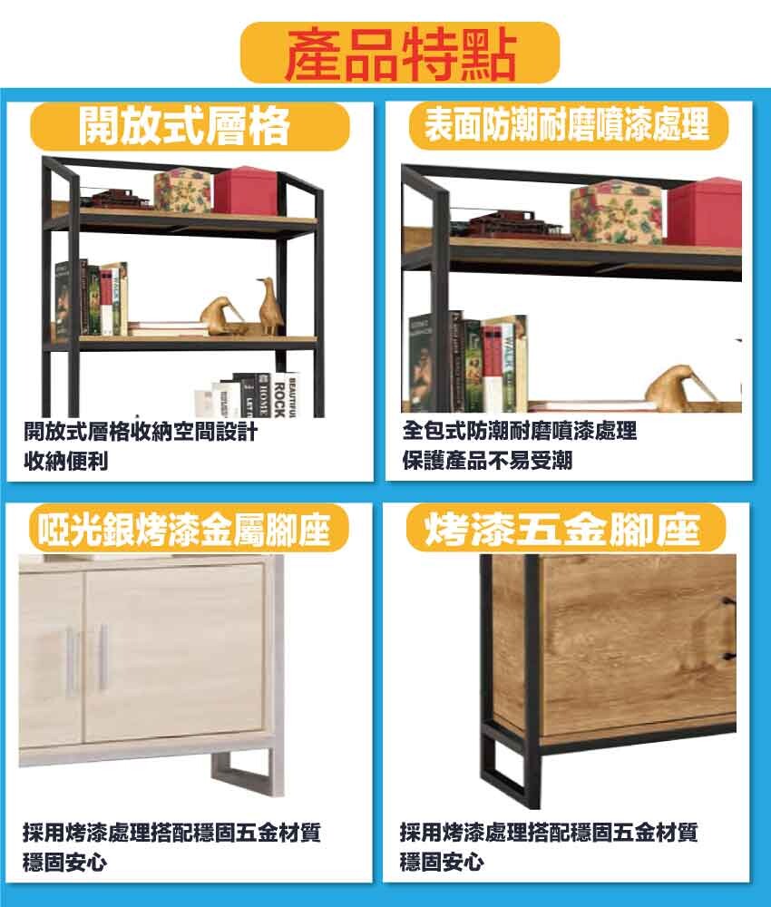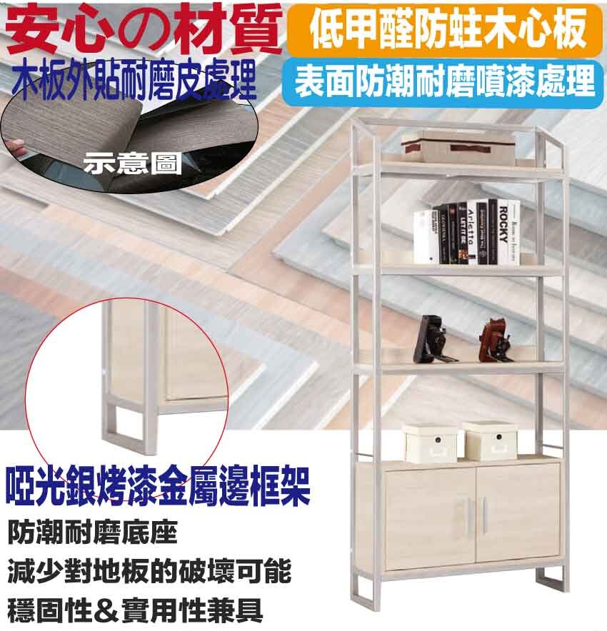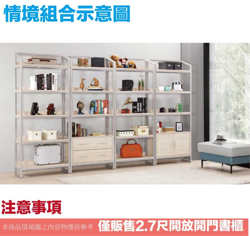 【綠家居】華爾2.7尺開放二門金屬邊框書櫃(二色可選) 二色可選+安心材質製造,使用放心+搭配居家更便利,採用防蛀木心板+烤漆五金腳座+啞光銀金屬邊框等安心材質製造 ,外層採用防潮耐磨噴漆處理搭配採用開門櫃+內外開放層格等收納空間設計,全由專人配送到家,專業安心服務,替你省下更多時間!