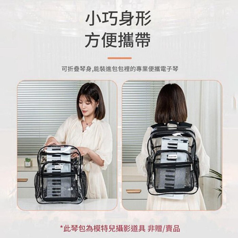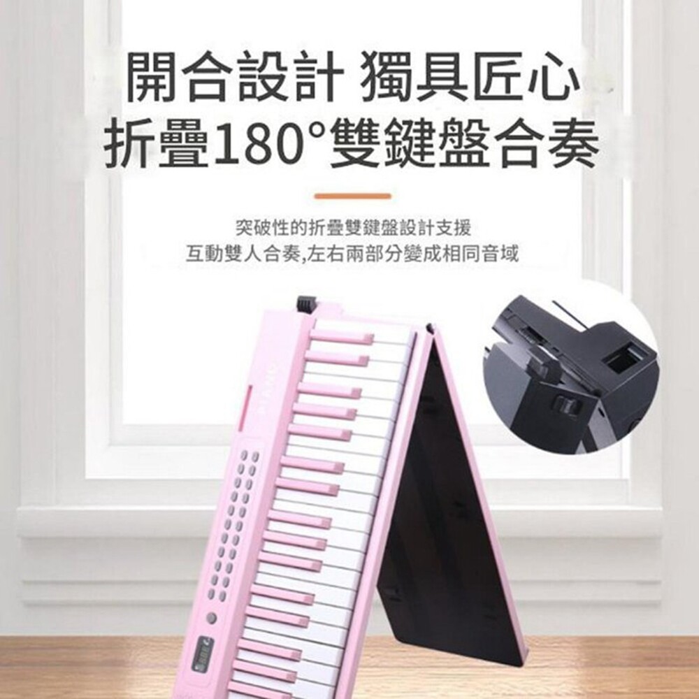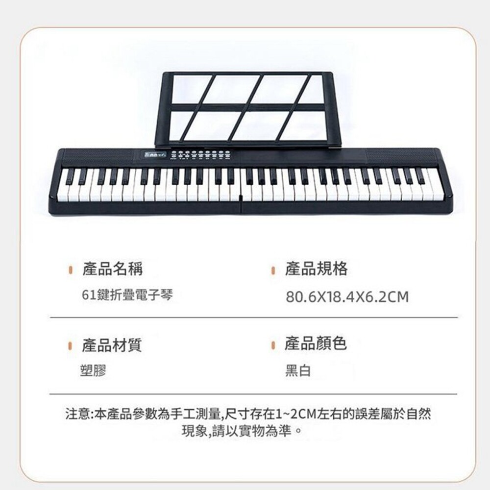 充電版粉紅 標準版 充電版紫色 標準版 產品名稱:61鍵折疊電子琴 產品規格:80.6x18.4x6.2CM 產品顏色:粉紅色、紫色、黑色、白色 注意:本產品參數為手工測量,尺寸存在1~2CM左右的誤差屬於自然現象,請以實物為準。