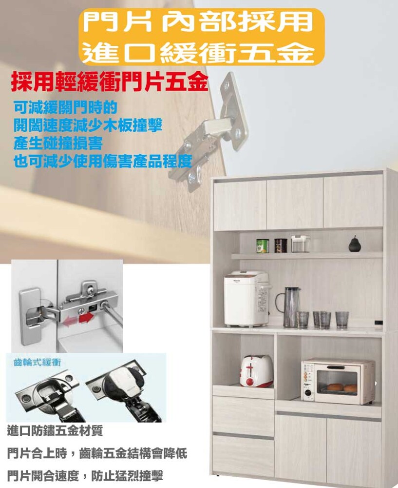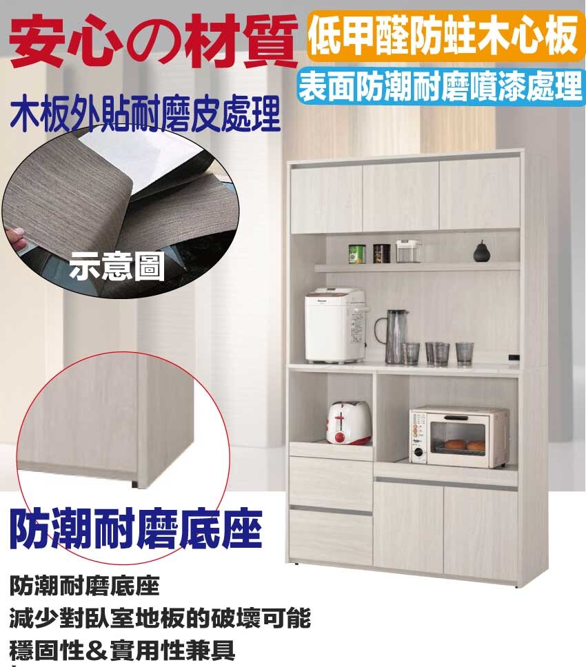 【綠家居】華爾雙色3.5尺五門拉盤高餐櫃組合 木紋雙色系+安心材質製造,使用放心+搭配居家更便利,採用防蛀木心板+防潮耐磨底座+防夾手緩衝門片五金+仿石紋耐磨美耐皿桌面板+五金滑軌結構等安心材質製造 ,外層採用防潮耐磨噴漆處理搭配採用開門櫃+拉盤層架+二抽屜+內&外開放層格+便利插座等收納空間設計,全由專人配送到家,專業安心服務,替你省下更多時間!