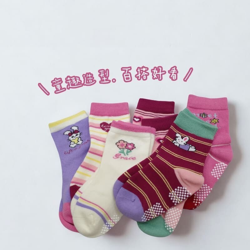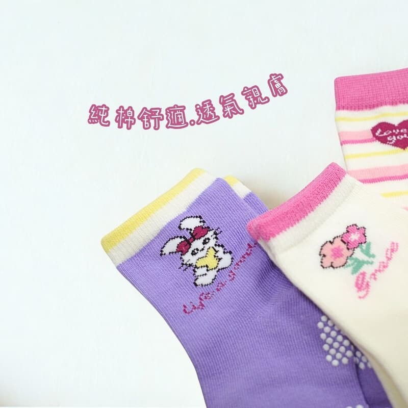 👍凱美棉業|純棉止滑童襪 甜心兔兔款 愛心童襪 卡通童襪 可愛襪 男童女童襪 兔兔 愛心 9-13
