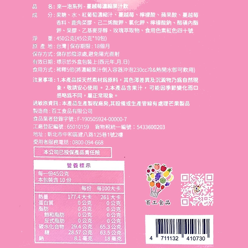 品名:來一泡-蔓越莓濃縮果汁飲(全素可食)