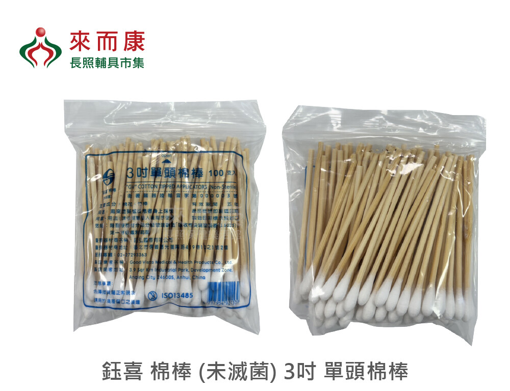 來而康 鈺喜 棉棒 (未滅菌) 3吋 單頭棉棒 100支/袋 380袋/箱 未滅菌 棉棒 單頭 棉花