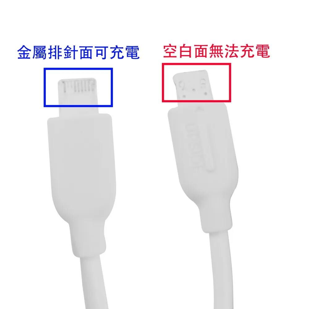 1. Lightning 單面接點設計,僅金屬排針面可充電,空白面無法充電