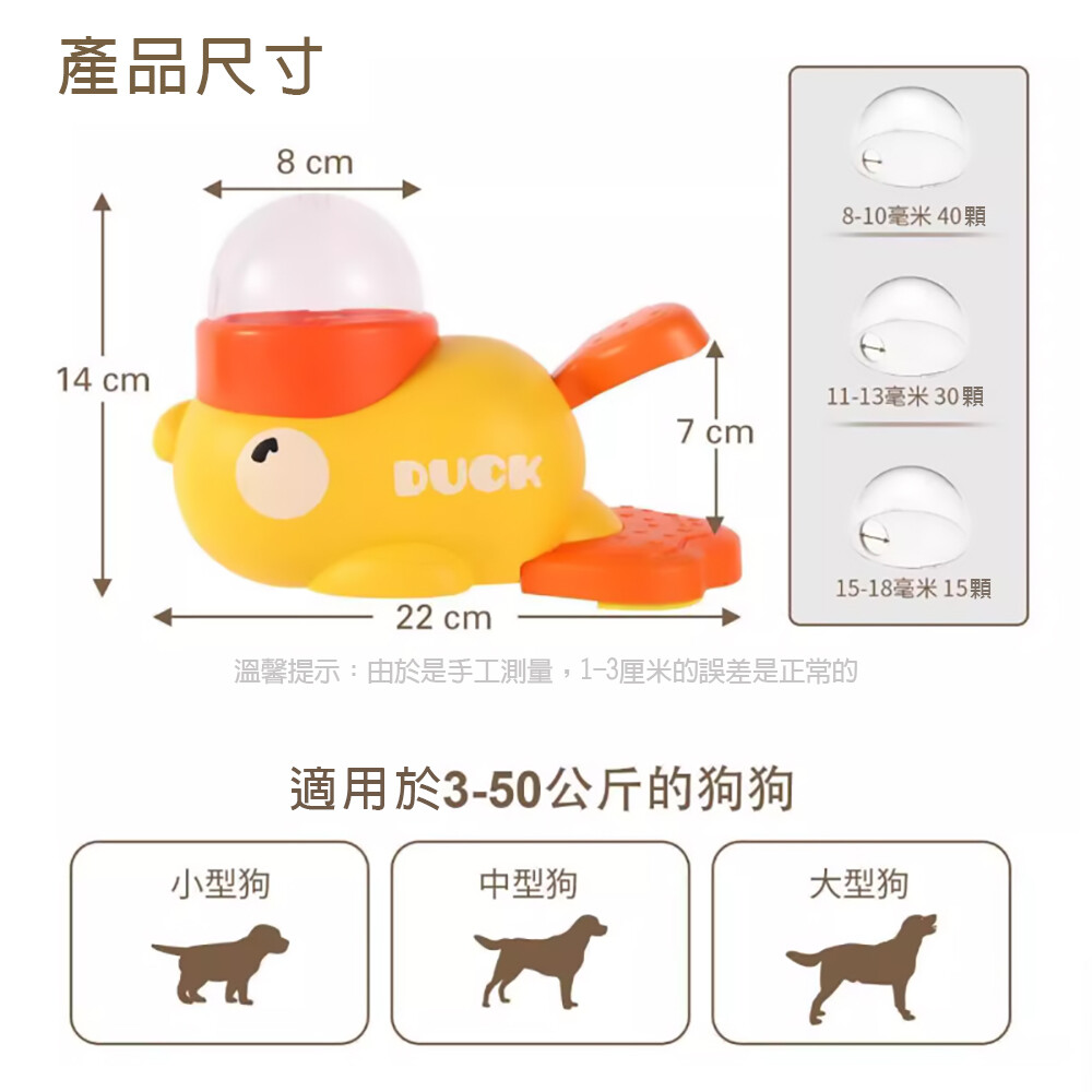 可愛小黃鴨造型:鮮豔顏色與造型吸引寵物目光,提升玩耍興趣。