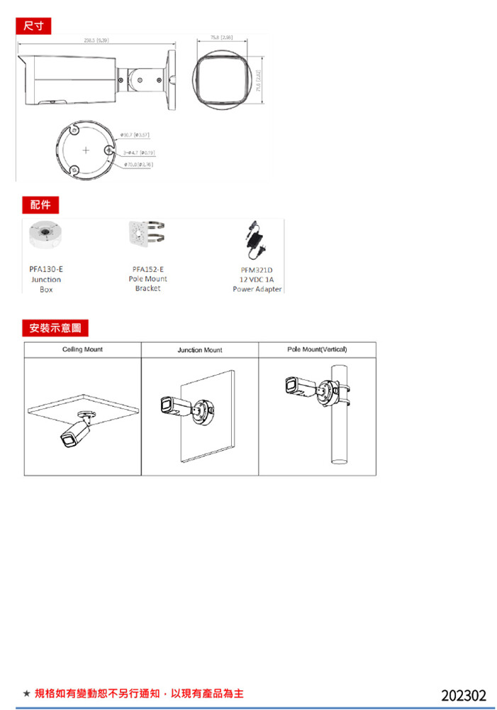 l 警報:1進,1出;聲音:1進,1出;內建麥克風,12 VDC/PoE 電源