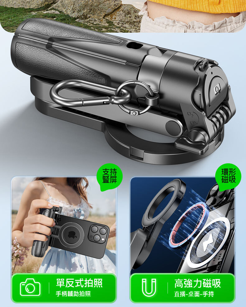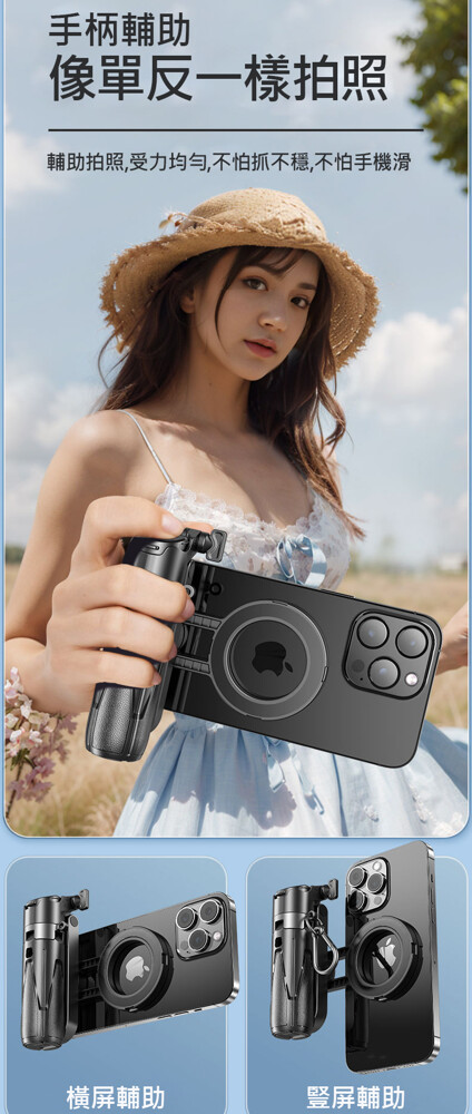 ◆輔助桿拍照,穩固握把享受如單反穩定度,防止手機滑落