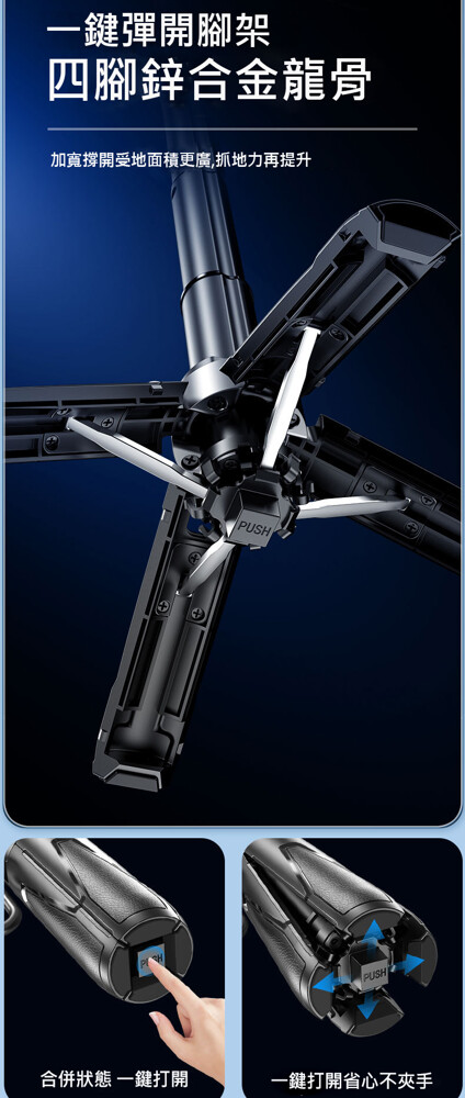 ◆一鍵彈開四腳架,省心不傷手,直播好幫手