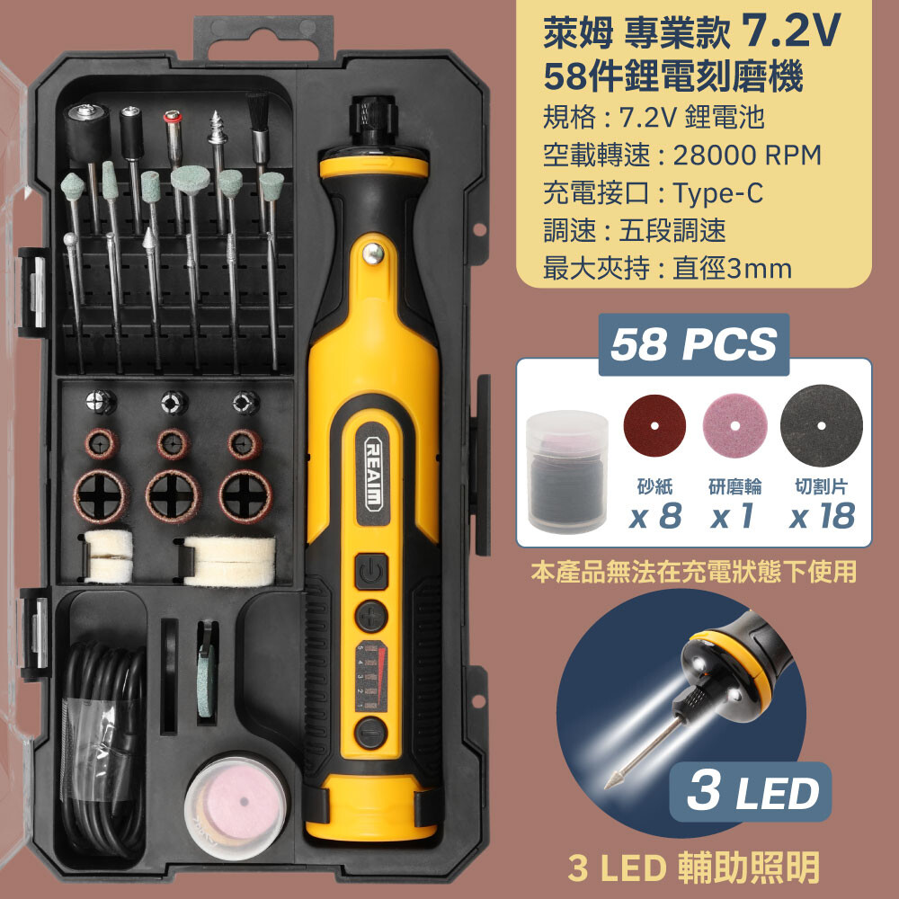 萊姆 專業款 7.2V 58件 鋰電刻磨機