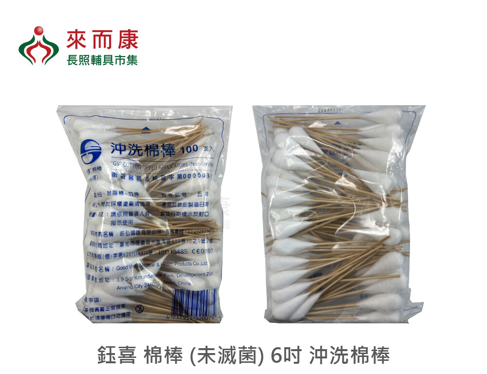 來而康 鈺喜 棉棒 (未滅菌) 6吋 沖洗棉棒 100支/袋 30袋/箱 未滅菌 棉棒 沖洗 棉花棒