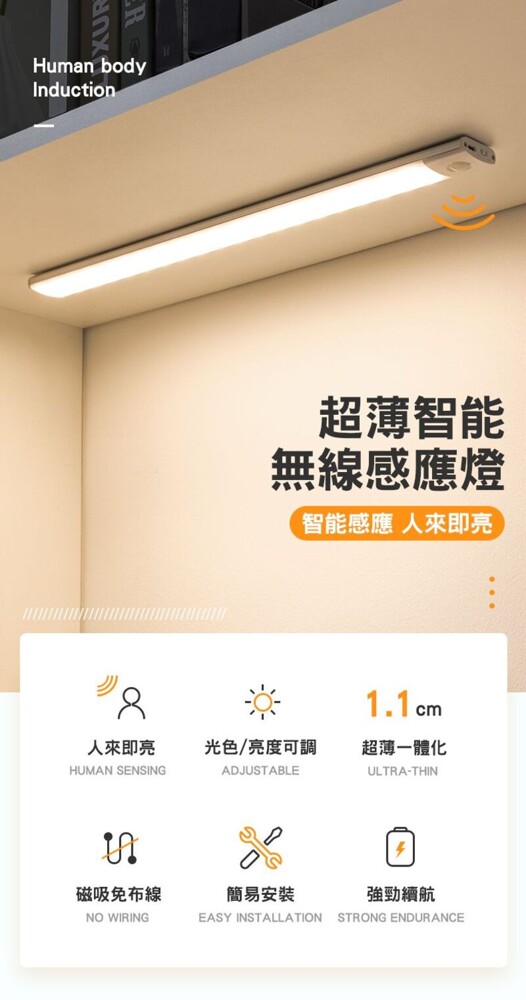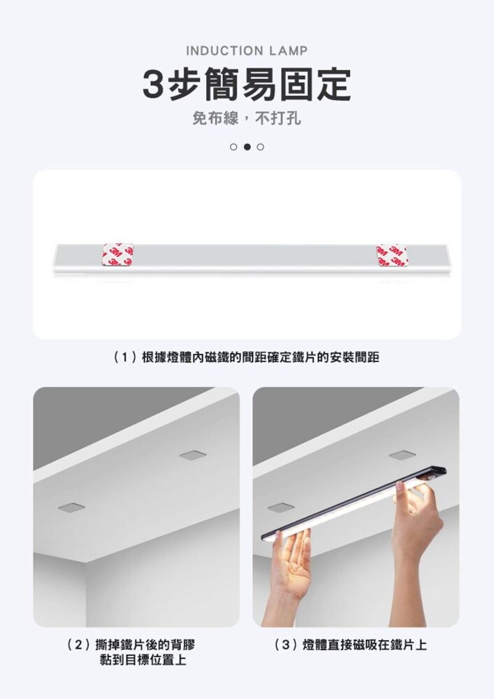 商品內容:燈體+兩面3M安裝鐵片+USB充電線