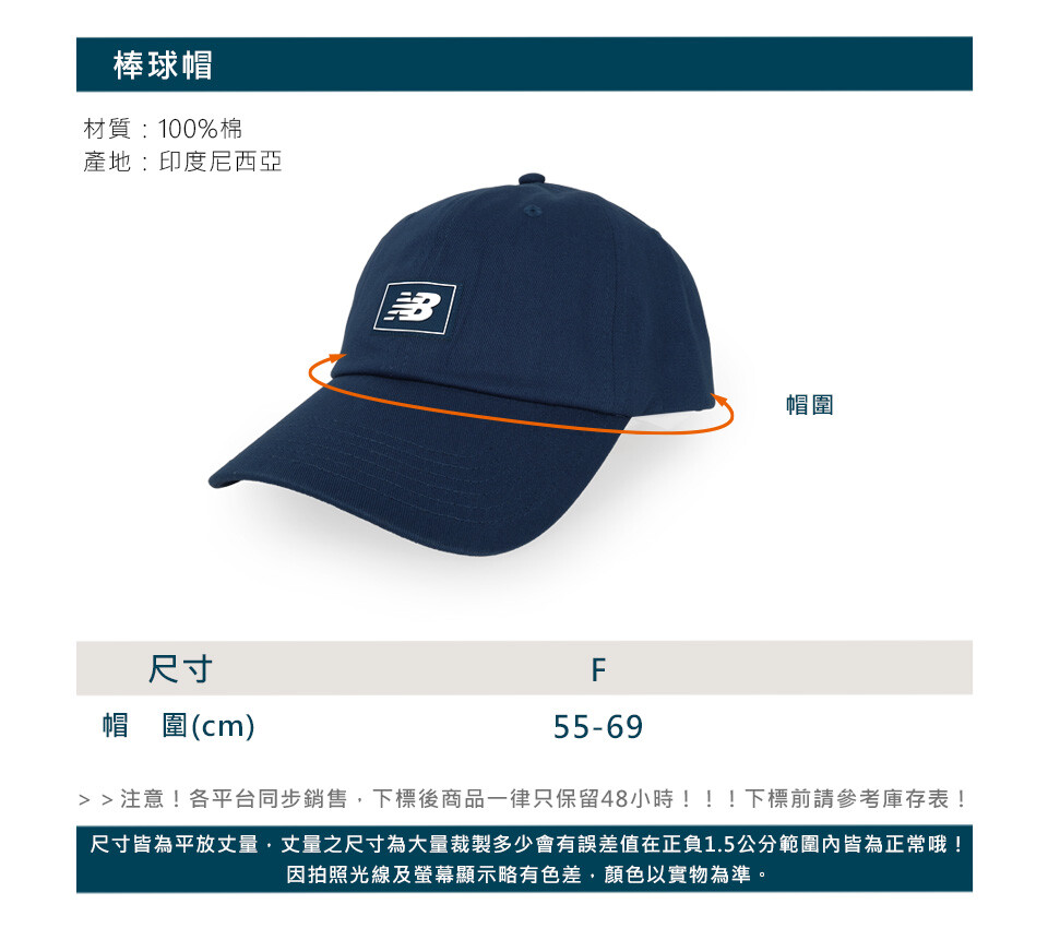 NEWBALANCE 棒球帽-純棉 防曬 遮陽 鴨舌帽 運動 帽子 丈青白