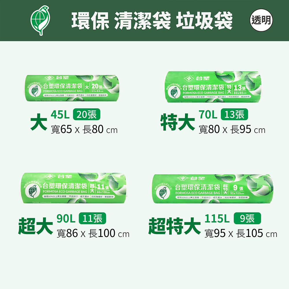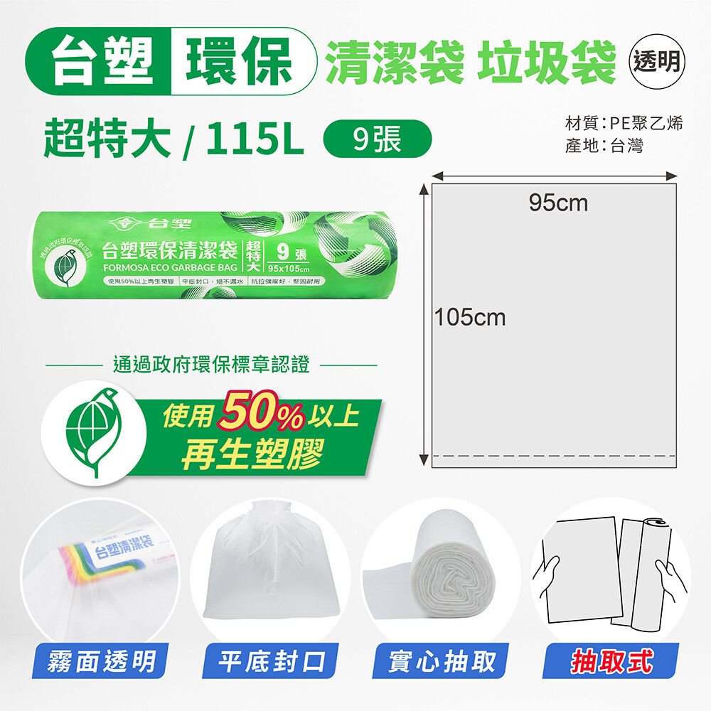台塑 環保 清潔袋 垃圾袋 (超特大) (透明) (115L) (95*105cm)