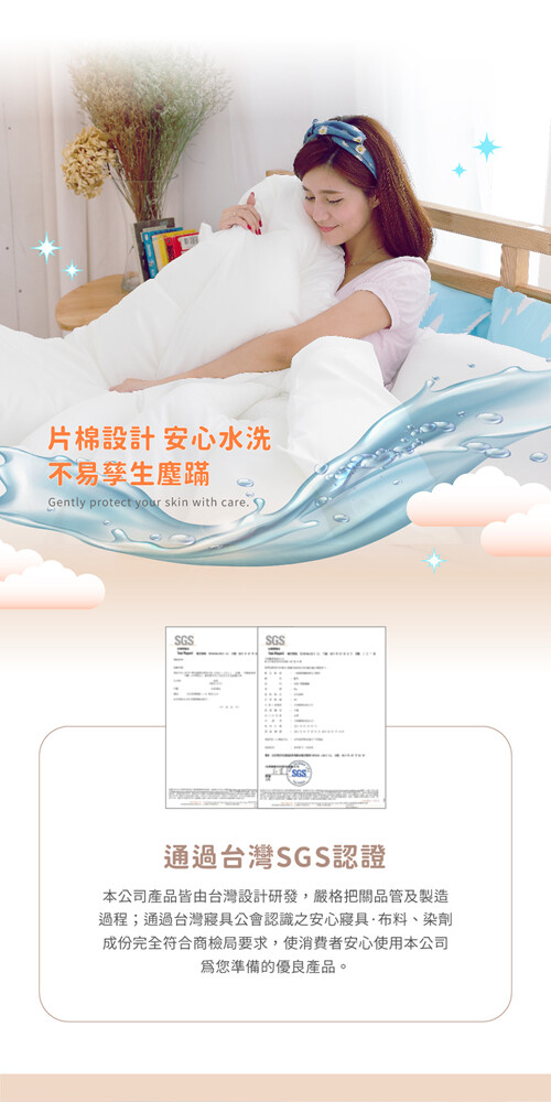 ◆整張進口纖維棉可水洗不易孳生塵蹣