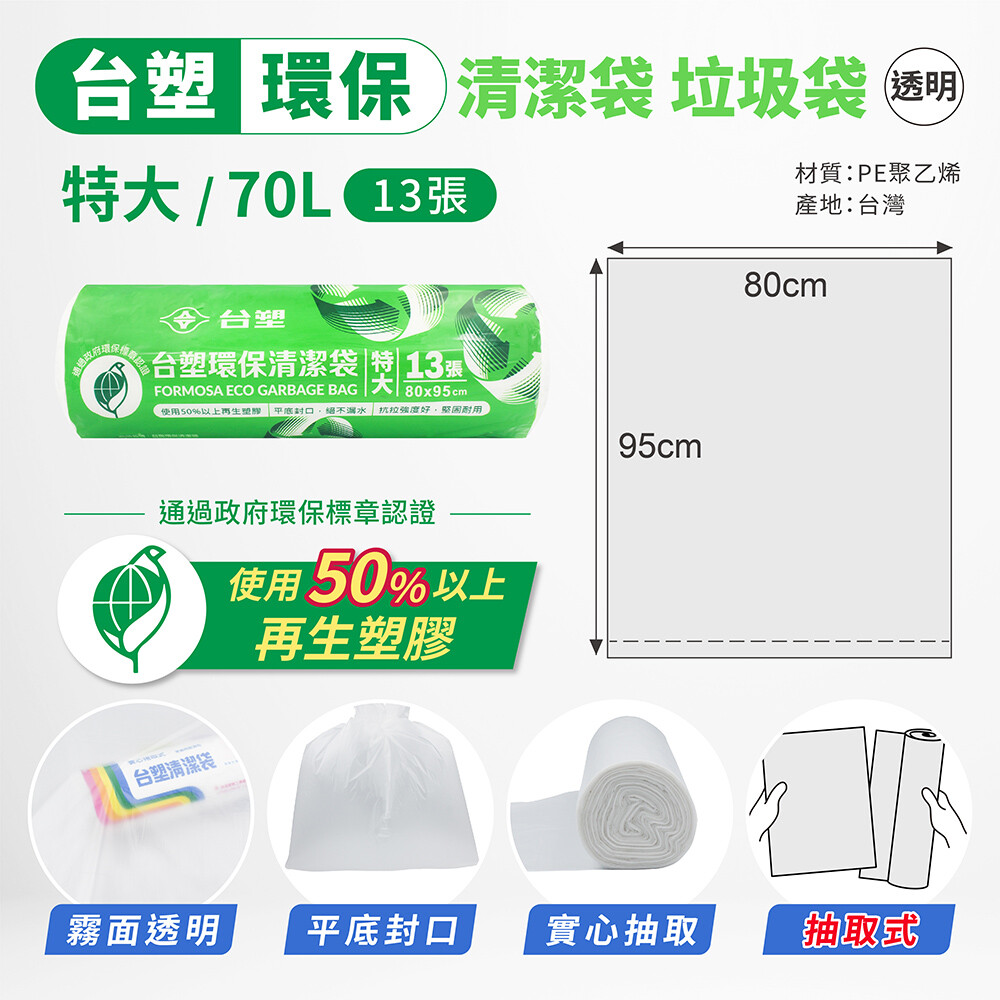 台塑 環保 清潔袋 垃圾袋 (特大) (透明) (70L) (80*95cm)