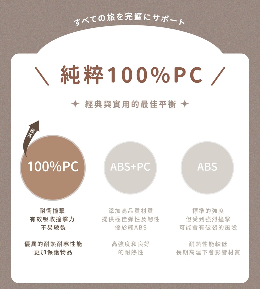 1. 100%純PC頂規材質|成就極致輕盈與強韌 給予行李全方位守護